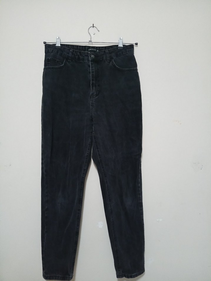 Siyah midi boy, bol kesim denim jean. Minimalist ve zahmetsiz şıklık sunar, günlük kullanım için uygundur. Trendy casual stil için ideal.
