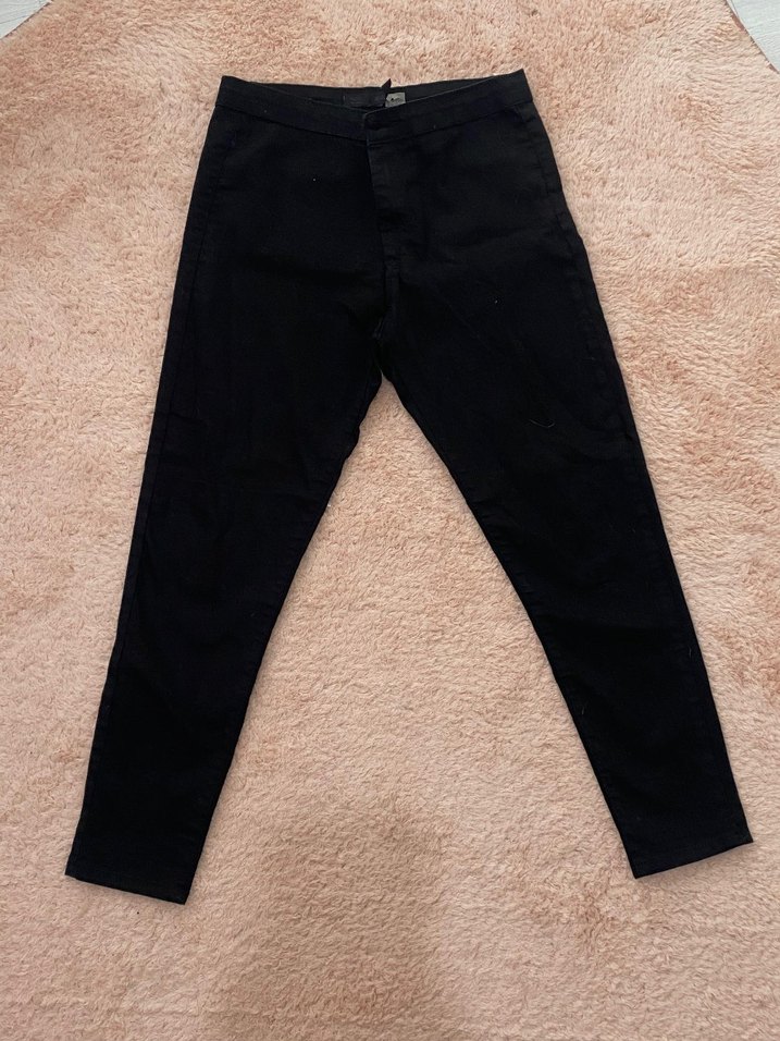 Midi boy, regular fit siyah denim pantolon. Minimalist ve desen içermeyen tasarımıyla günlük kullanıma uygun, zahmetsiz şıklık sunar. M/L