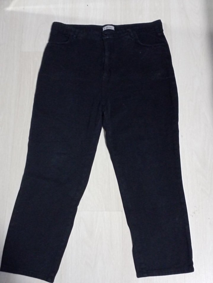 Kadınlar için siyah midi uzunlukta denim pantolon, rahat kesimiyle günlük kullanıma uygun şık ve sade bir görünüm sunar. Trendy casual ve normcore tarzlara uyumludur.