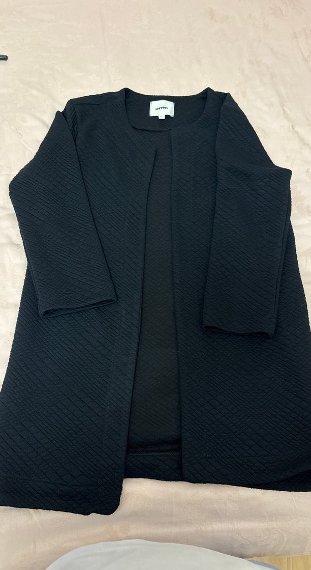 Kadın Siyah Midi Düz Kesim penye Kaplı Ceket