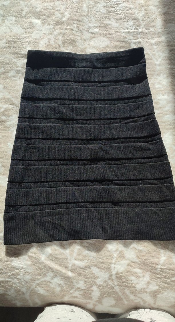 Kadınlar için siyah, şerit detaylı, dar kesim midi etek. Sentetik kumaştan yapılmış, minimalist ve gotik tarzda, günlük kullanım için uygun. esnek bir yapıya sahip