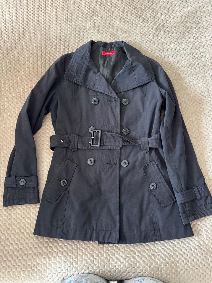 Siyah renkli, kemerli ve dar kesim kadın trençkot. Notlu yakası, strappy uzun kolları ve midi boyu ile günlük kullanım için uygun.