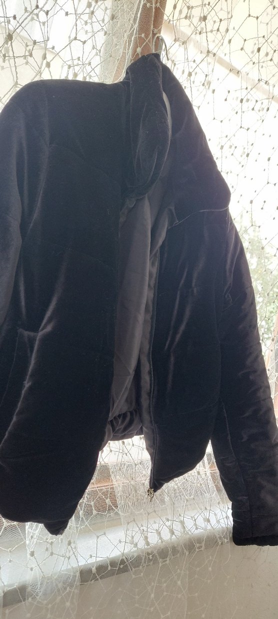 Yumuşak ve sıcak kumaştan yapılmış, yüksek yakalı, bol kesim siyah midi kışlık ceket. Drapeli tasarımı ve uzun kollarıyla günlük kullanıma uygun, modaya uygun gotik stil.