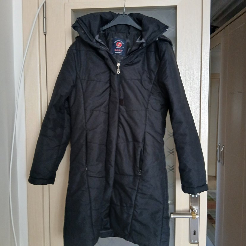 Kadın siyah midi uzunlukta, fermuarlı ve kesimli kışlık mont. Uzun kollu, yumuşak ve sıcak kumaştan, rahat sokak stili için uygun. ❄️ boy 86 cm iki göğüs arası 46 hiç bir kusuru yoktur