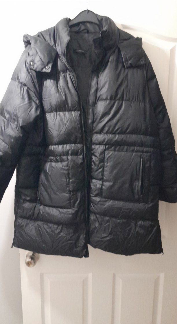 Bu siyah kadın kışlık mont, kesik yaka ve fermuarlı ceplere sahiptir. Dar kesimli, uzun kollu ve midi boydadır. Rahat ve sıcak kumaştan üretilmiştir. ❄️