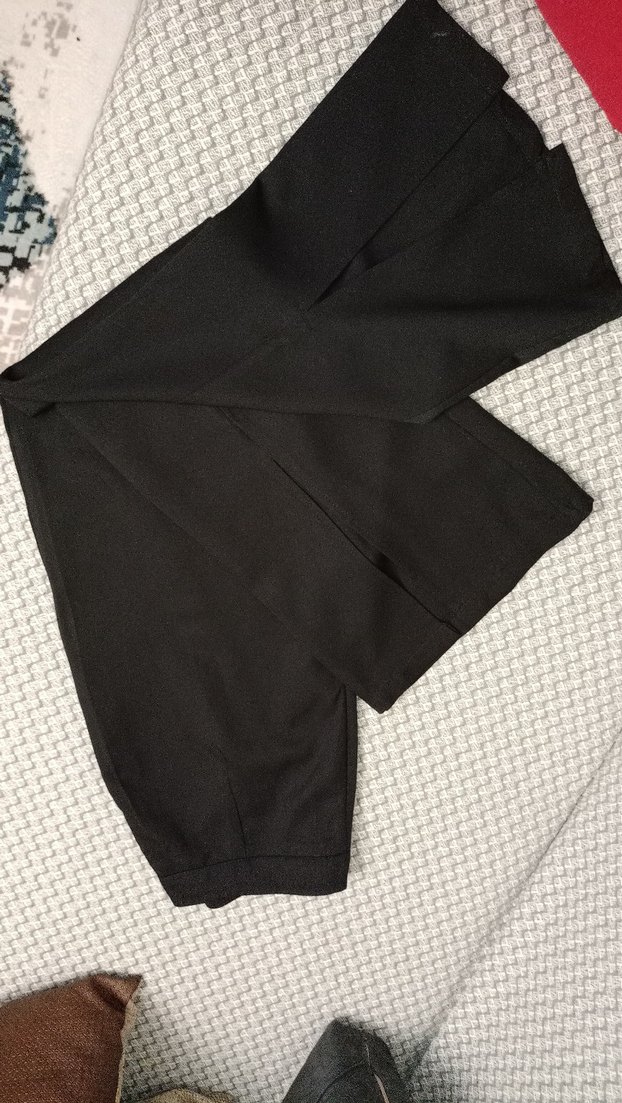 Kadınlar için siyah midi pantolon, düzenli kesim ve drapeli tasarıma sahip, sentetik kumaştan üretilmiştir. Minimalist ve desensiz yapısıyla ofis kullanımı için uygundur.