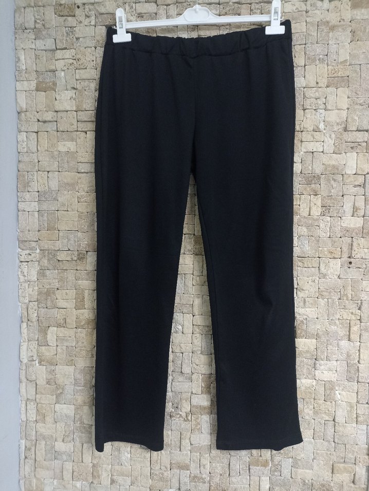 Kadınlar için siyah midi uzunlukta, düz desenli, sentetik kumaştan yapılmış ve rahat oturan pantolon. Ofis için şık ve gündelik bir görünüm sunar. ✨XXL BEDEN bel 45 cm uzunluk 99 cm