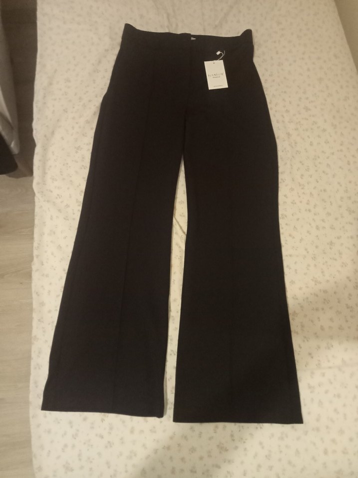 Kadınlar için siyah midi kumaş pantolon, normal kesim ve desen içermeyen tasarımıyla ofis için zahmetsiz şıklık sunar. bel 41 boy 110 paça genişliği 27