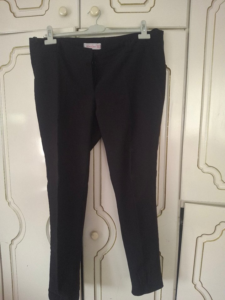 Kadınlar için siyah midi uzunlukta, regular fit ve kemerli kumaş pantolon, ofis ve sokak stiline uygundur.