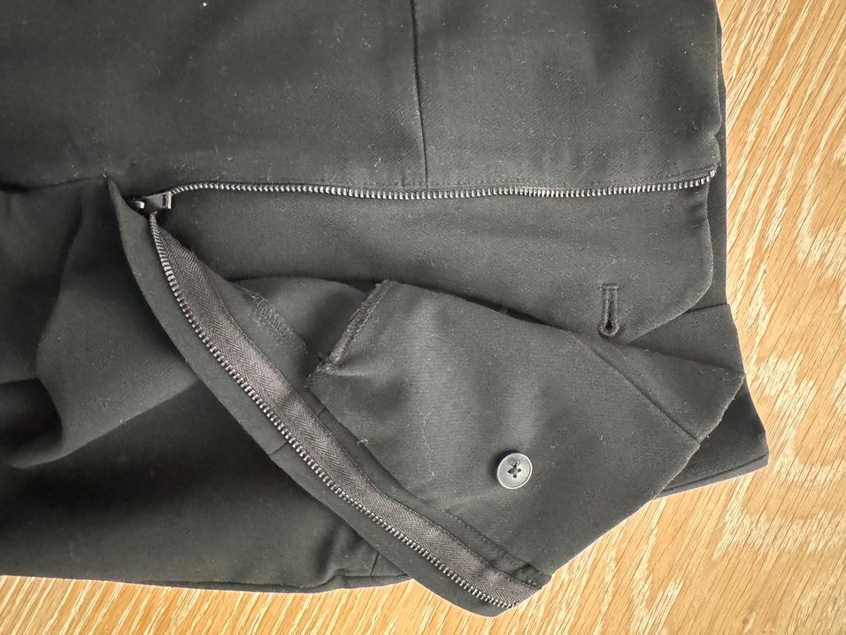 Zara 1 gün boyunca denendi olmadı satılık Kadın siyah midi kumaş pantolon, regular fit, fermuarlı ve düğmeli ön kapama özelliklerine sahiptir. İş ortamları için uygun, sade ve temel tarzda tasarlanmıştır. Rahat ve şık bir görünüme sahiptir.