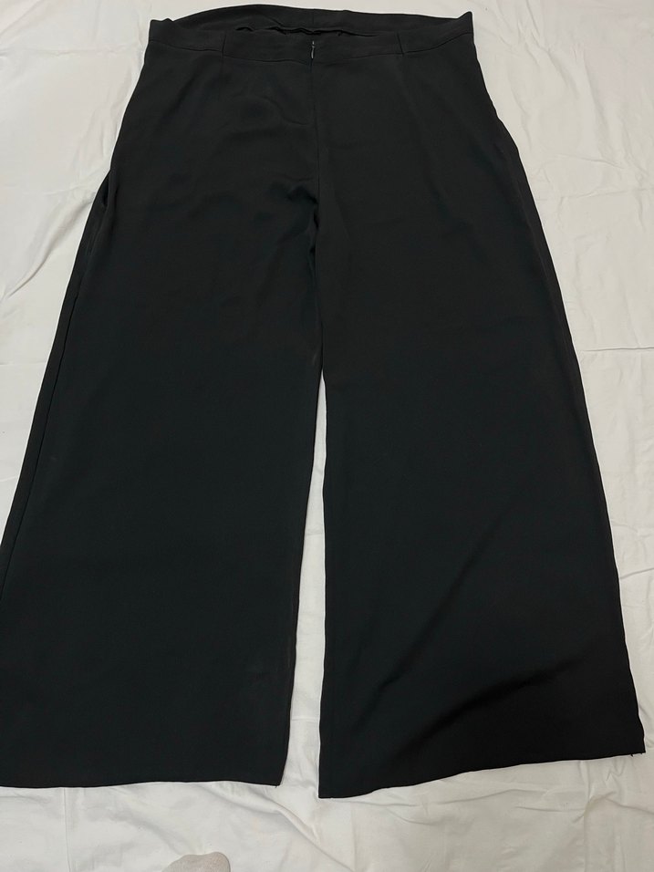Kadınlar için siyah midi boy, regular fit kumaş pantolon. Minimalist ve normcore tarzıyla günlük kullanıma uygun, kolay şıklık sağlar.