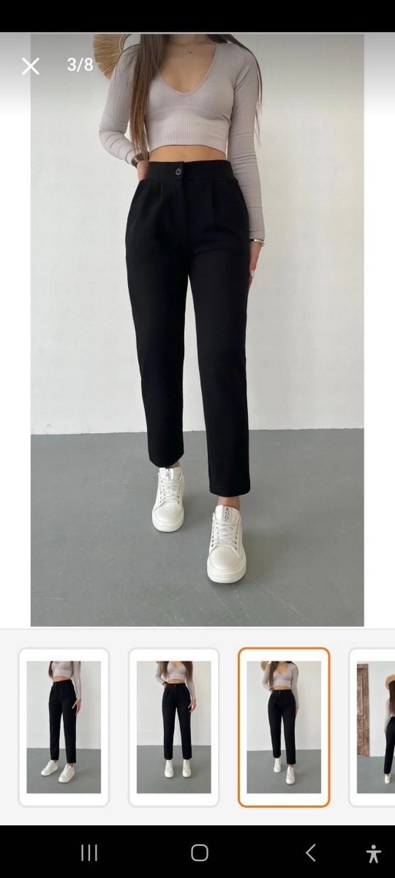 Kadınlar için siyah midi uzunlukta, regular fit kumaş pantolon. Minimalist sokak tarzı, pürüzsüz sentetik kumaştan, günlük rahat kullanıma uygun şık görünüm sağlar.