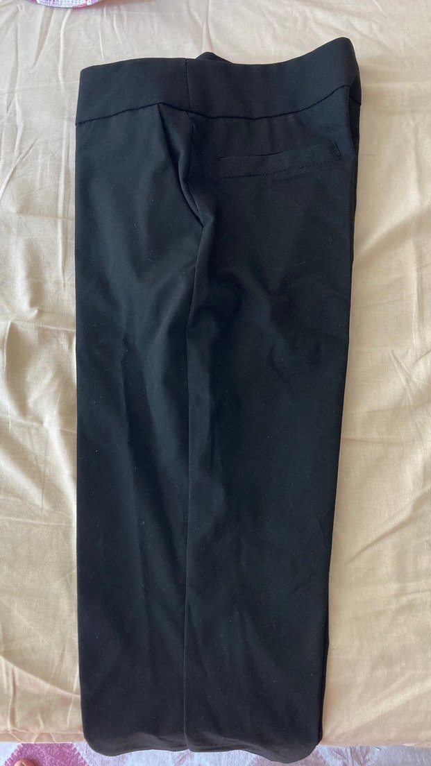 Kadınlar için siyah midi uzunlukta, regular fit kumaş pantolon. Düz ve minimal tasarıma sahip, ofis için uygun, kolay şıklık sunan sentetik dokuma.