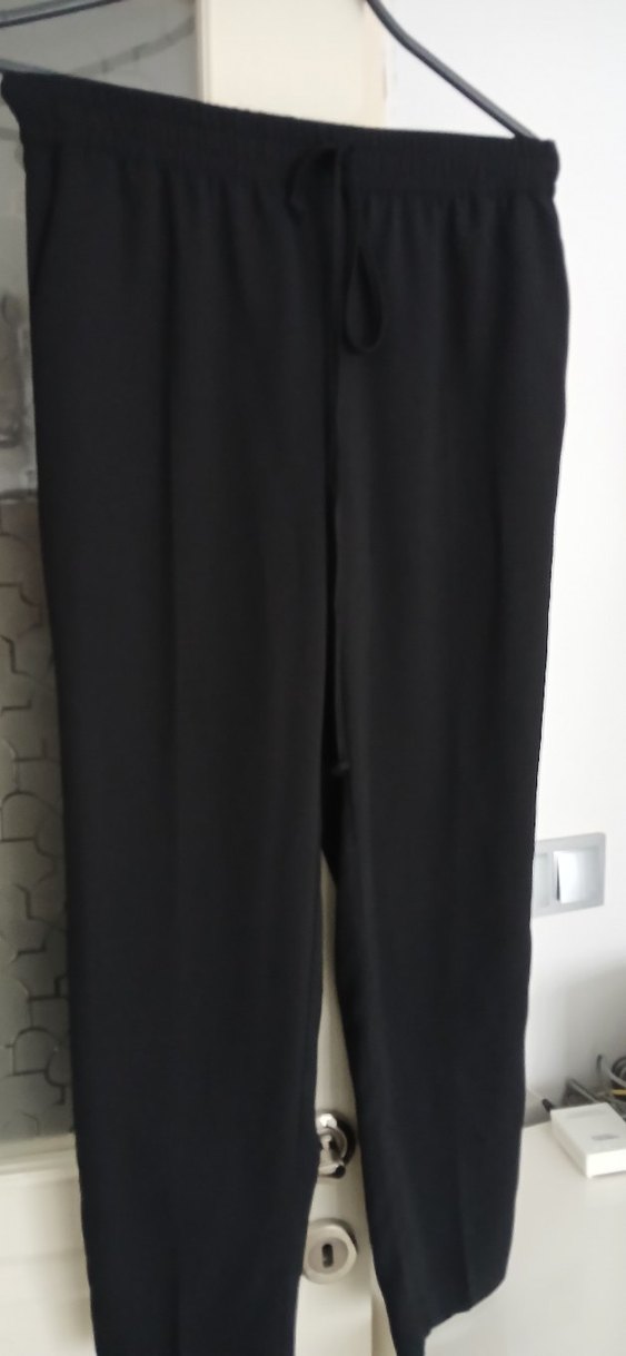 Yumuşak, ipeksi kumaştan, kemer detaylı, bol kesim siyah midi pantolon. Minimalist, desensiz ve ofis için uygundur.