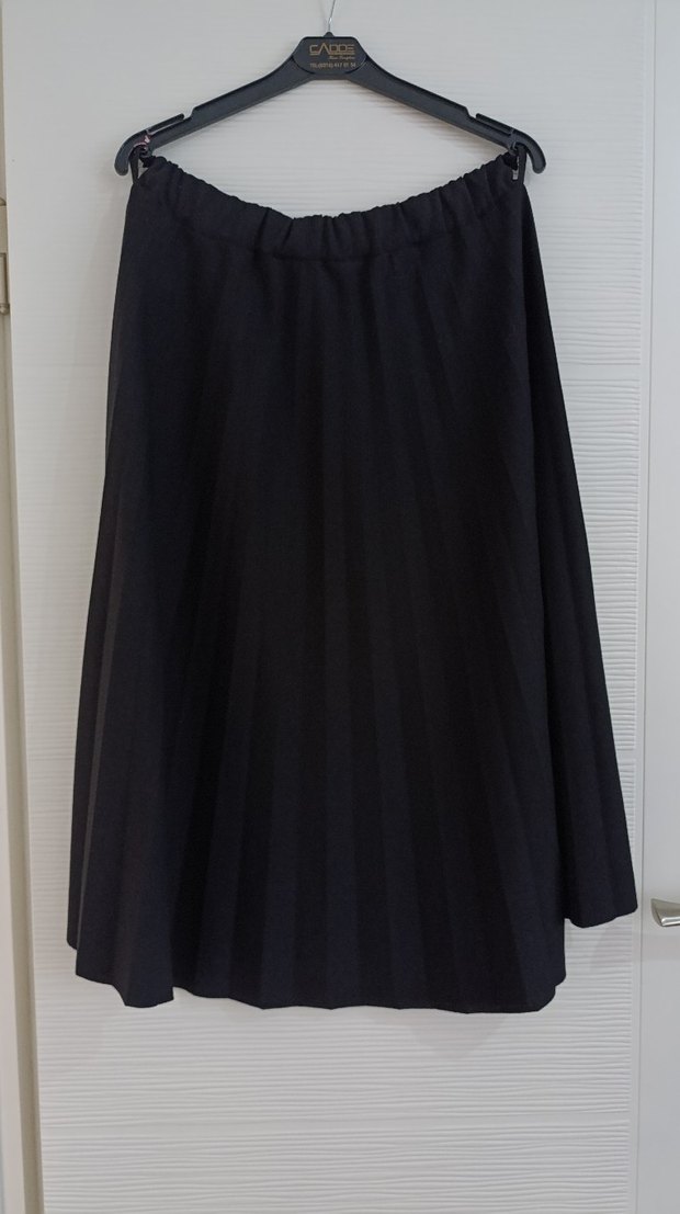 Pileli ve bol kesim siyah uzun etek.
