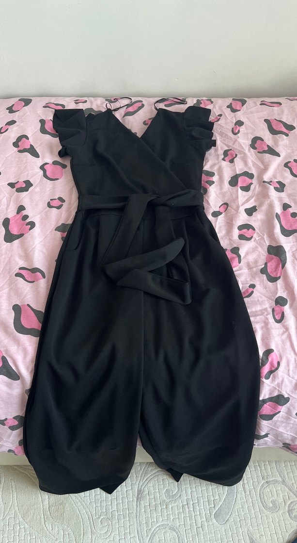 Kadın Siyah Midi Straplez Tulum