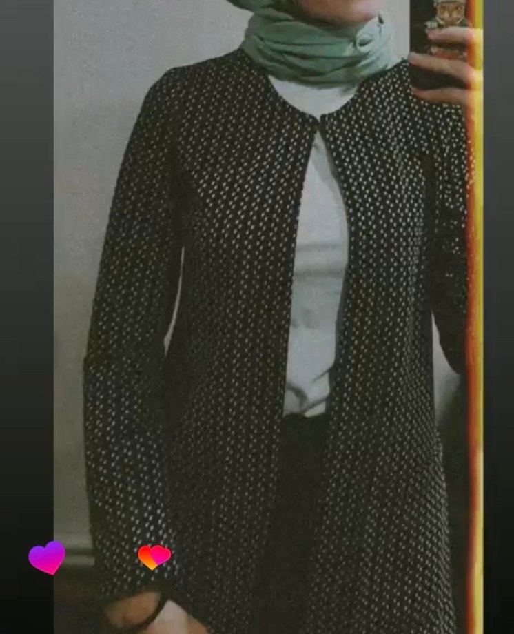 Siyah midi uzunlukta yılan desenli ve triko dokulu kadın ceketi. Uzun kollu, rahat kesim, günlük iş stiline uygun.