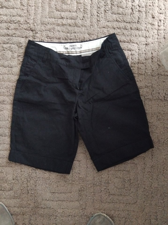 Siyah pamuklu, bol kesim, kısa boy ve desensiz kadın Bermuda şort. Günlük rahat kullanım için şık ve konforlu. giymedim