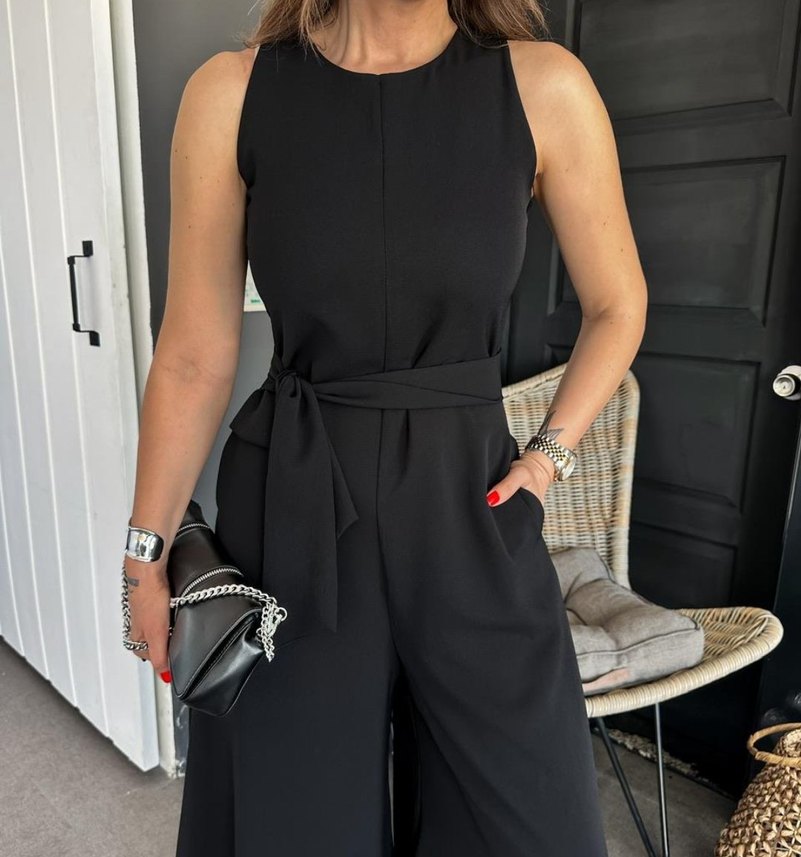 Kadın Siyah Mini Deri Kemerli Tulum