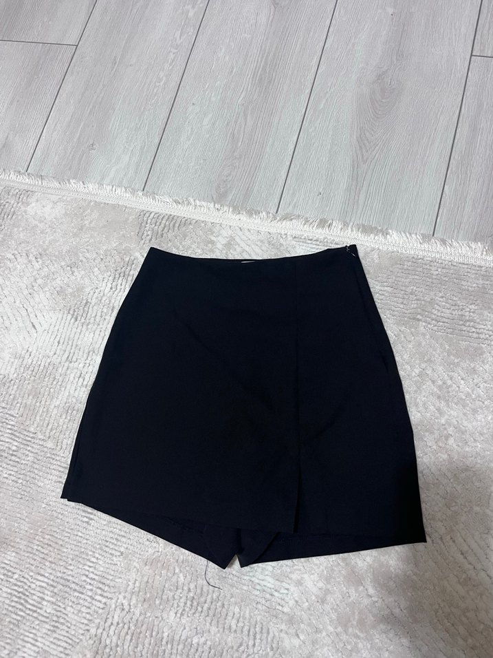 Siyah mini etek, vücuda oturan kesimi ve düz yapısıyla günlük sokak stiline zarif bir dokunuş katıyor.