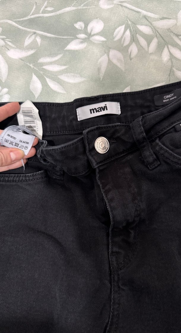 Siyah renkli, düğmeli, baskılı detaylı mini fit kot pantolon. Mavi markasına ait, günlük sokak stiline uygun kot kumaş.