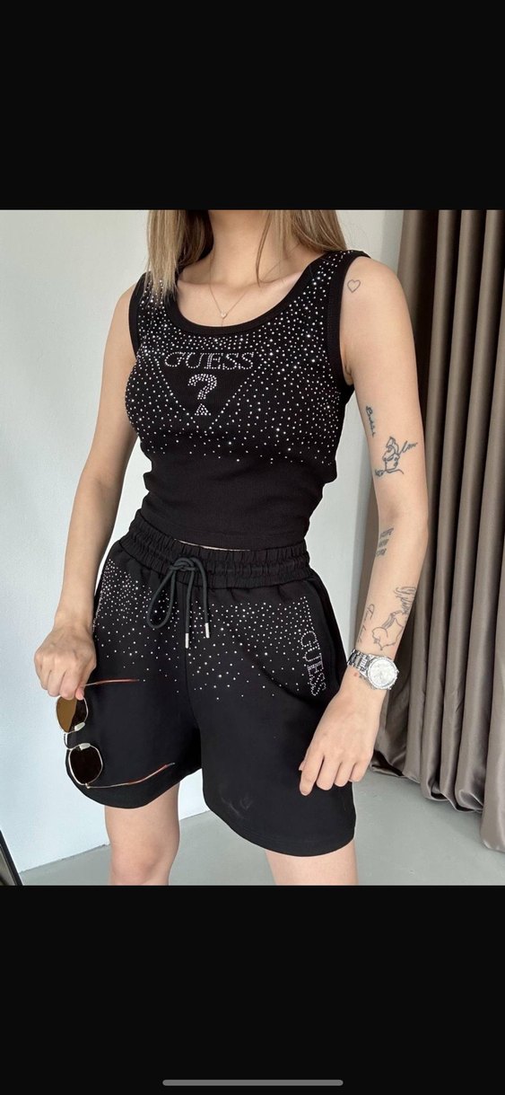 Kadın Siyah Mini Parlak Atlet Şort Takım