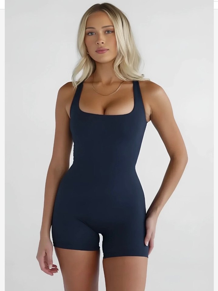 Düz siyah renkli, düz yaka ve askılı kol detaylı, sıkı oturan sentetik kumaştan mini tulum. Spor ve sokak tarzına uygun şık bir model. ✨ L ve M bedeni mevcuttur