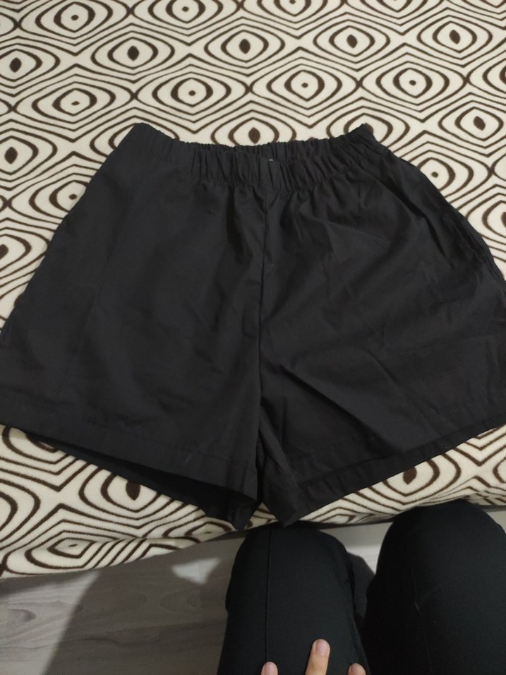 Sentetik kumaştan yapılmış, sokak tarzına uygun, sade ve şık siyah mini şort. Günlük kullanım için uygundur.