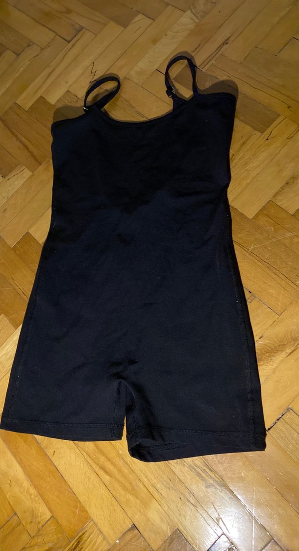 Dar kesim siyah mini tulum, askılı ve kolsuz tasarımıyla sentetik kumaştan üretilmiştir. Günlük cesur stil için uygundur. ✨