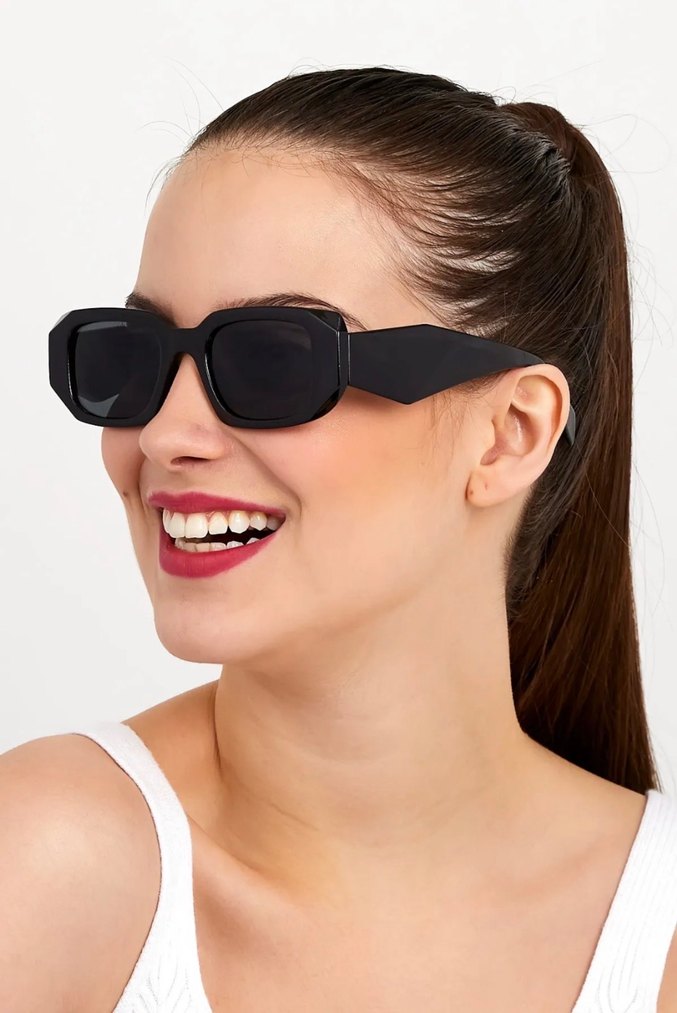 Kadınlar için siyah, minimalist ve geometrik tasarımlı gözlükler, rahat ve trend görünüme zahmetsiz şıklık katıyor. ️