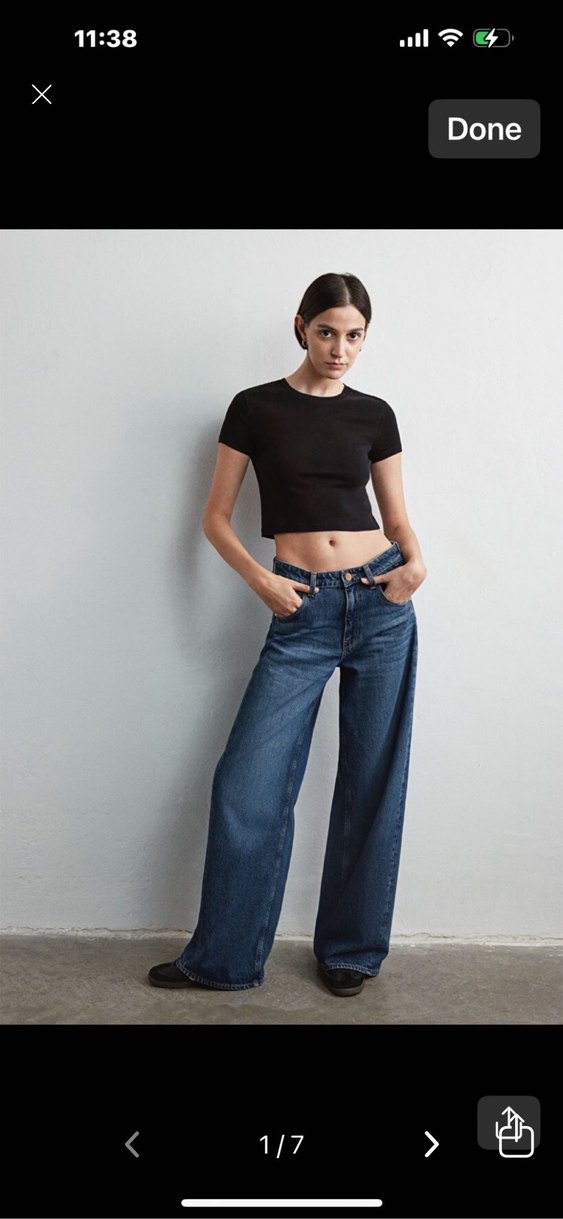 Normal boy, bol kesim siyah denim pantolon, günlük kullanım için rahat ve şık bir seçenek. ✨