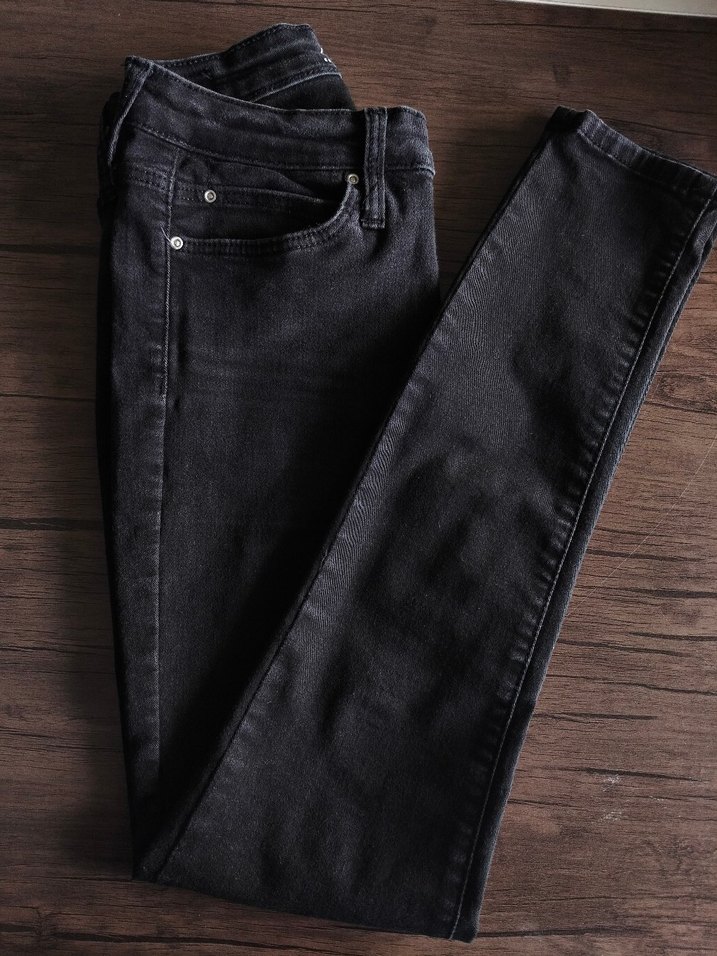 Kadınlar için siyah denim pantolon, normal boy ve regular fit. Tokalı detayı ve minimalist normcore tarzıyla günlük kullanıma uygundur.