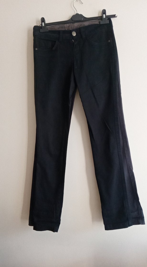 Kadınlar için siyah denim pantolon, düz paça ve normal boyda, minimalist ve normcore stilinde, günlük kullanıma uygun rahat ve şık.bel 80 boy 100 tertemiz Bir siyah bir gri aynı beden