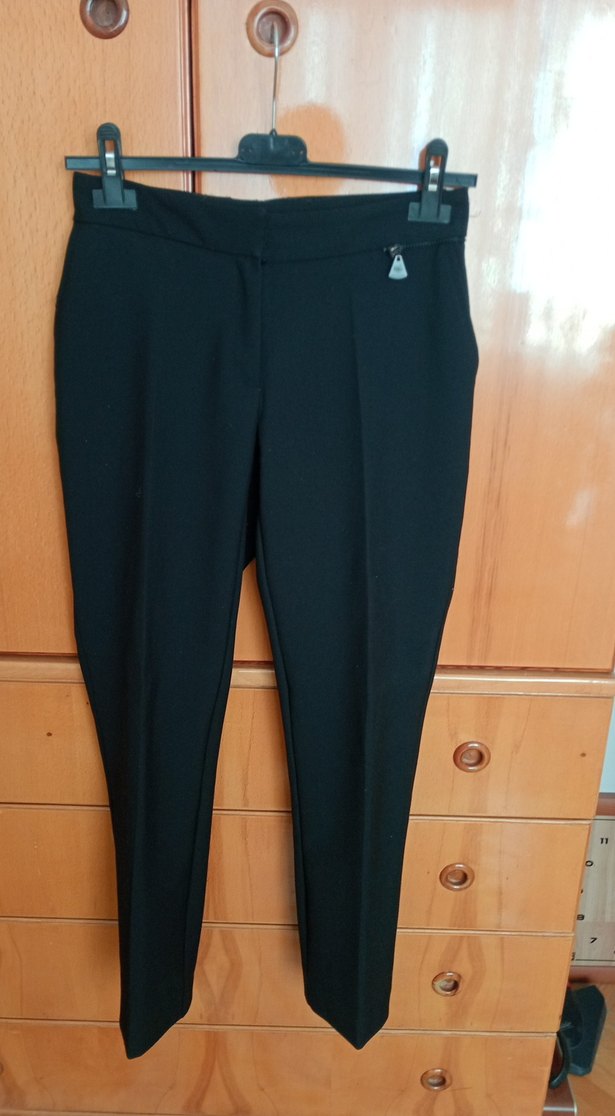 Kadınlar için siyah, normal boy, kemerli kumaş pantolon. Ofis ve günlük sokak tarzına uygun, regular fit ve sentetik kumaştan yapılmıştır.adl marka çok yeni