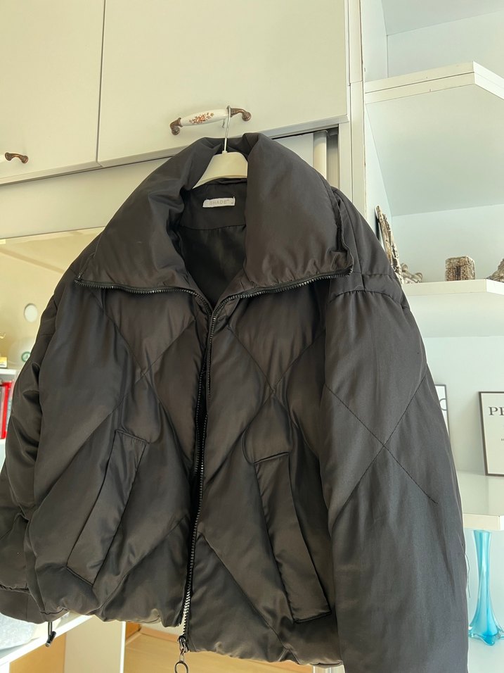 Kadınlar için yüksek yakalı ve fermuarlı, yumuşak sentetik kumaştan yapılmış siyah midi boy rahat kesim mont. Uzun kollu ve gündelik kullanım için uygun minimal tasarım. Yıkandıktan sonra tüyleri biraz toplandı sadece belli olmuyor