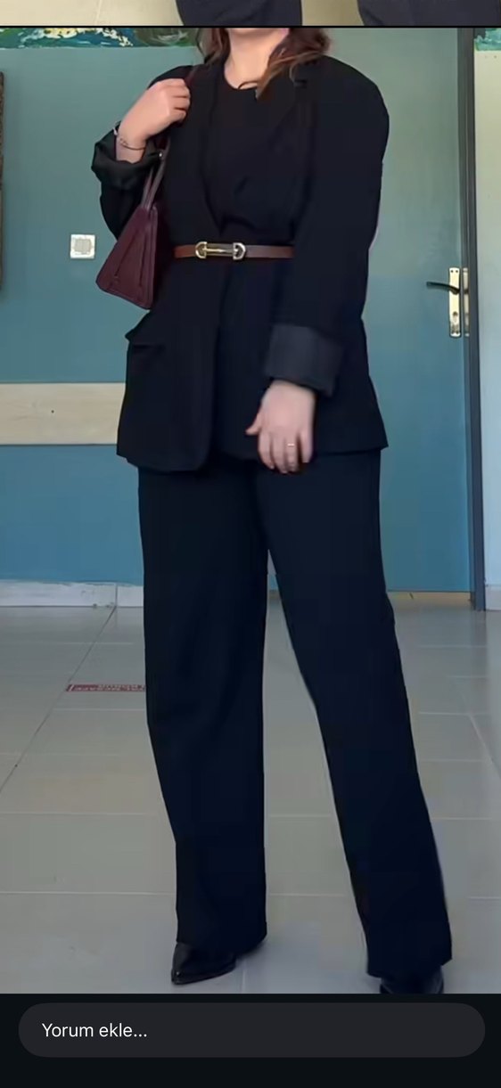 Kadın siyah blazer ceket, normal kesim ve kırlangıç yaka detayına sahiptir. Midi boy ve sentetik kumaştan üretilmiş, ofis için şık ve rahat bir seçimdir. İki defa tek kullanıldı