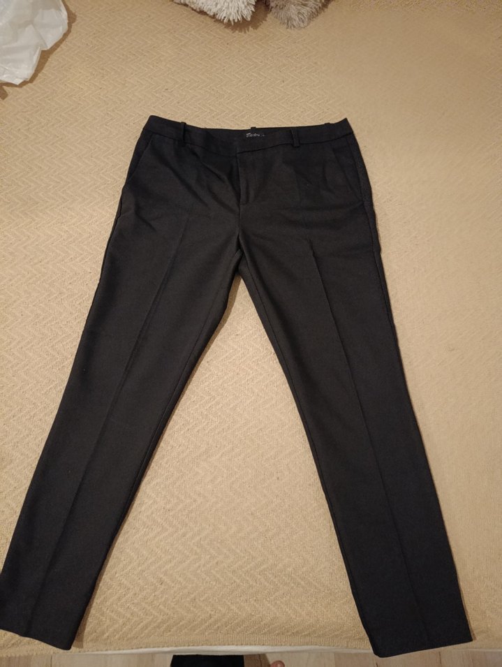 kadınlar için siyah ofis pantolonu, regular fit ve normal boyda, yumuşak sentetik kumaştan üretilmiştir. Düz desensiz, iş ortamı için uygundur.