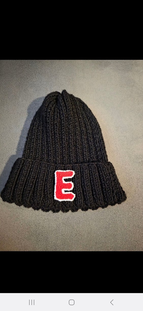 Kadınlar için siyah örgü bere, rahat sokak stiliyle kırmızı 'E' harfi nakışlıdır. Yumuşak örme kumaştan üretilmiştir.kişiye özel istenilen harfle yapılmaktadır