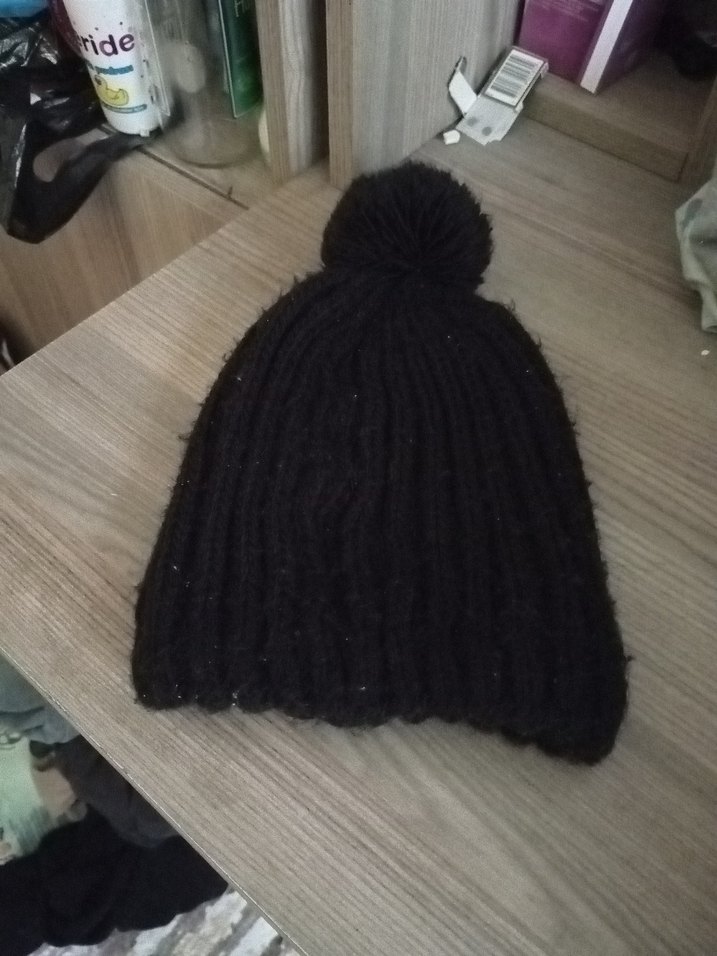 Kadınlar için siyah örgü, ponponlu bere, rahat dokusu ve gotik tarzıyla sade bir görünüm sunar.