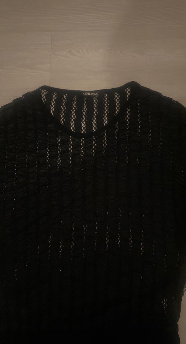 Siyah örgü, yuvarlak yakalı, uzun kollu ve bol kesim kadın kazak. Gotik tarzda, midi boyda ve sentetik kumaştan, günlük kullanıma uygundur.