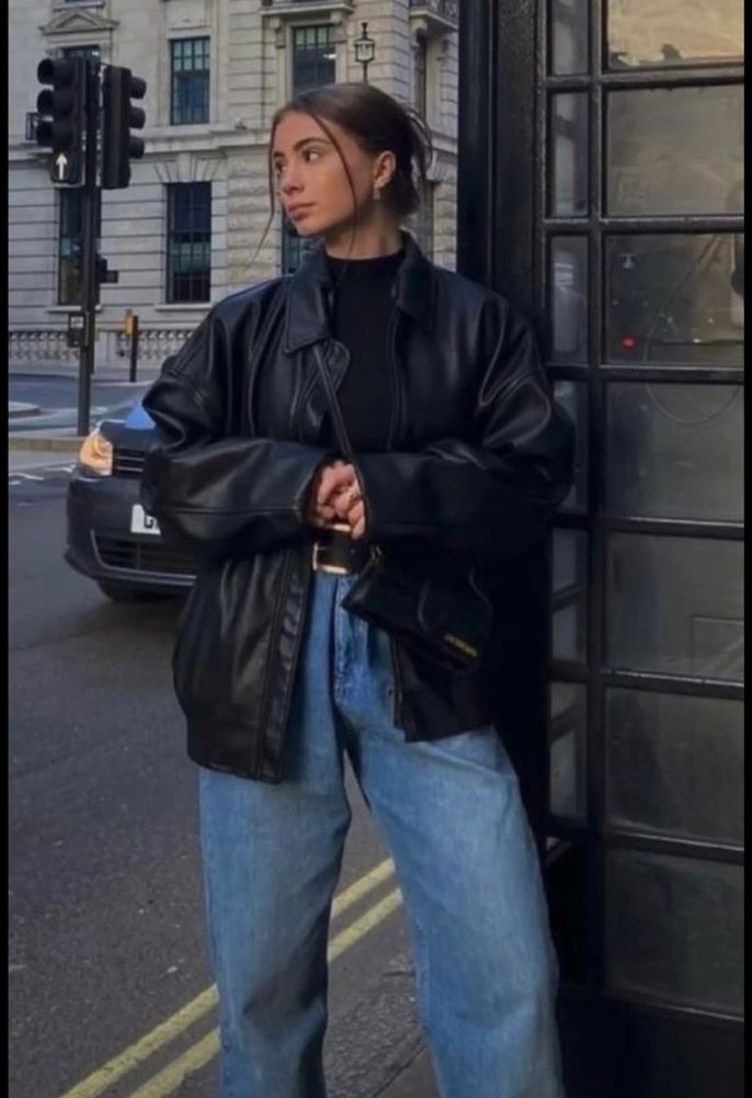 Kadın Siyah Oversize Deri Ceket
