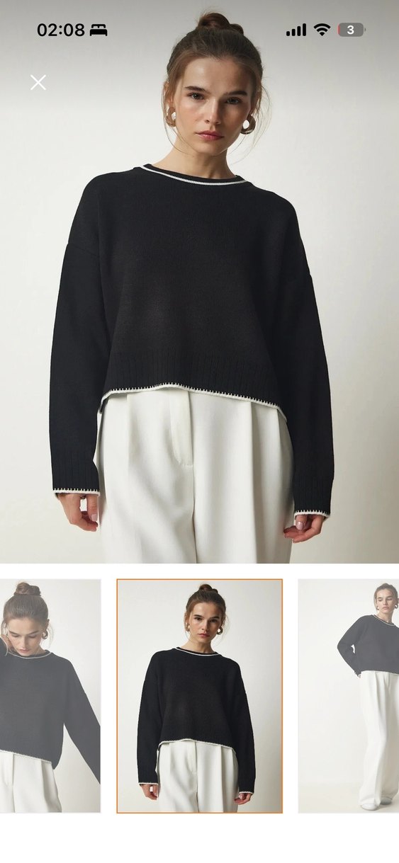 Kadınlar için yuvarlak yakalı, uzun kollu, oversize kesim triko kazak. Minimalist ve zahmetsiz şıklık sunan siyah renkte, günlük kullanım için uygundur.