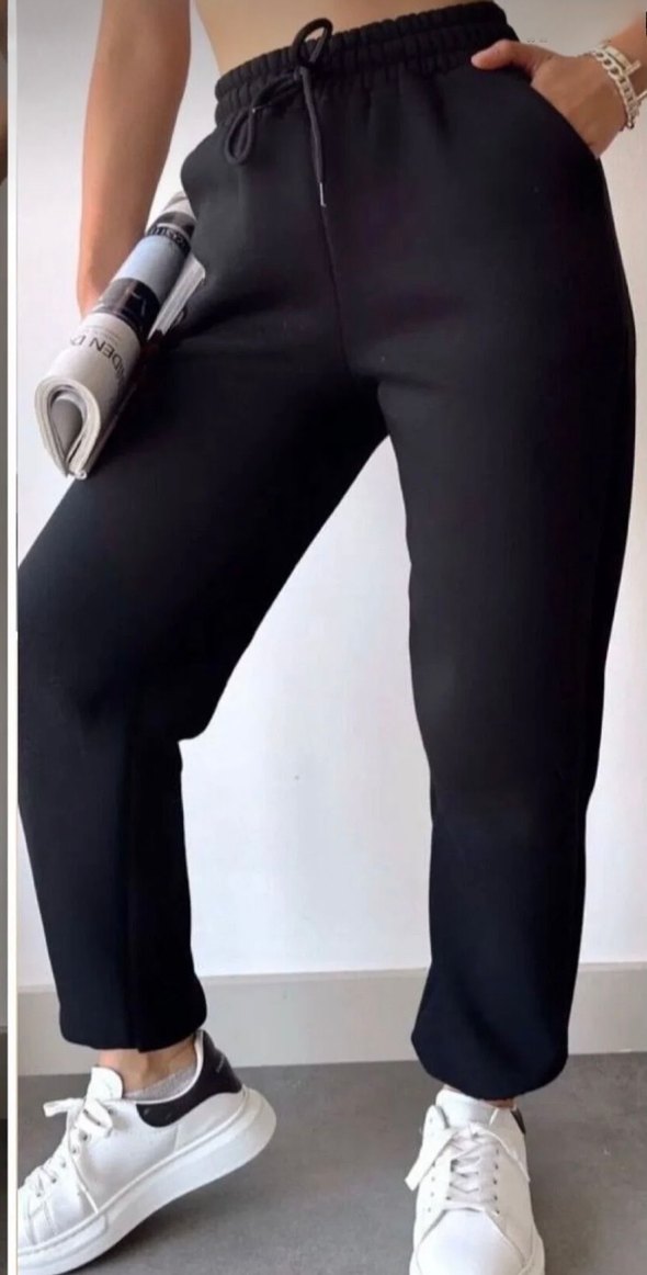 Kadın Siyah pamuklu Fit Eşofman Altı