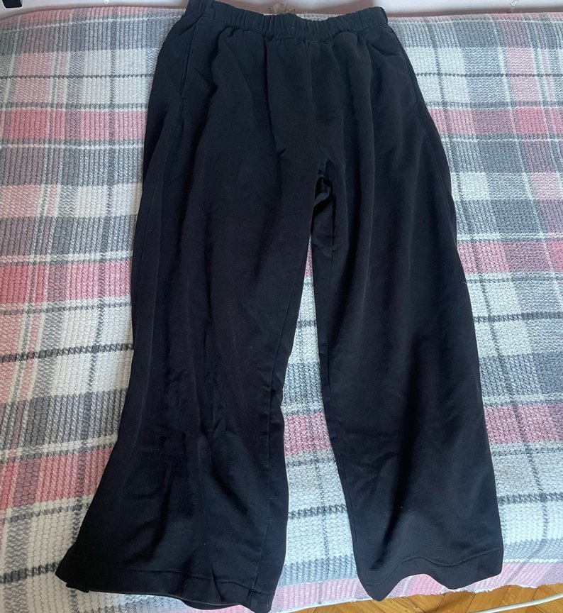 Siyah keten kumaştan, salaş kesim ve midi boyda olan bu pantolon, günlük kullanım için rahat ve şık bir sokak stili sunar.