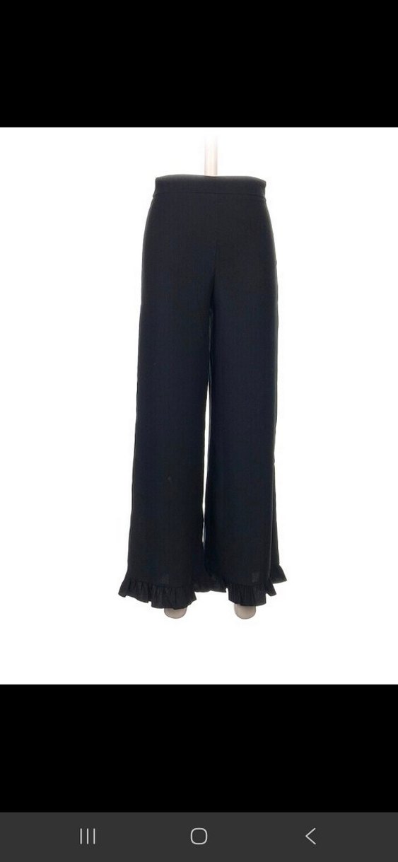 Siyah pantolon, kullanım için uygun, yumuşak sentetik kumaştan üretilmiştir. Tatlı güzel bi parça