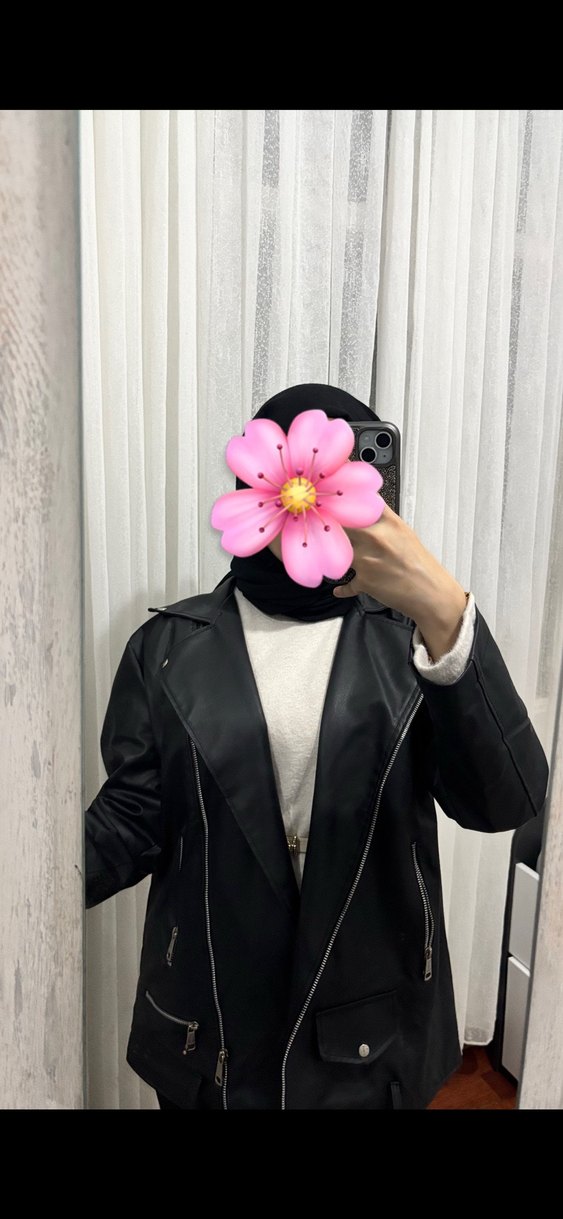 Fermuarlı cepleri ve parlak yüzeyi olan, kesimli siyah deri biker ceket. Günlük kullanım için uygundur.