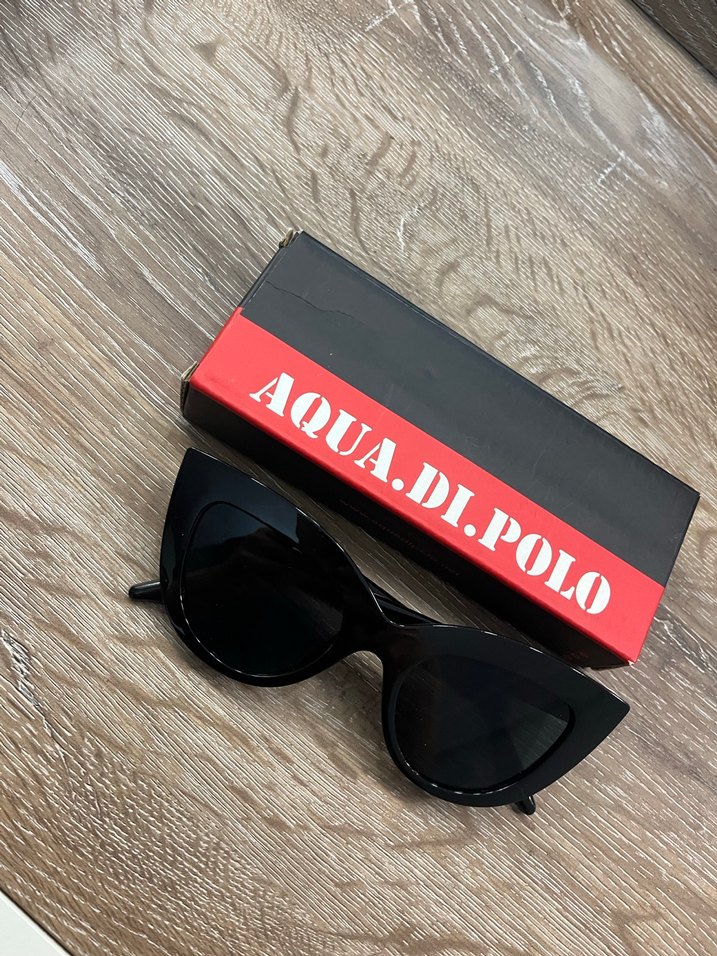 Kadınlar için AQUA.DI.POLO markalı parlak siyah kedi gözü tarzında, cesur ve klasik sokak moduna uygun güneş gözlüğü.