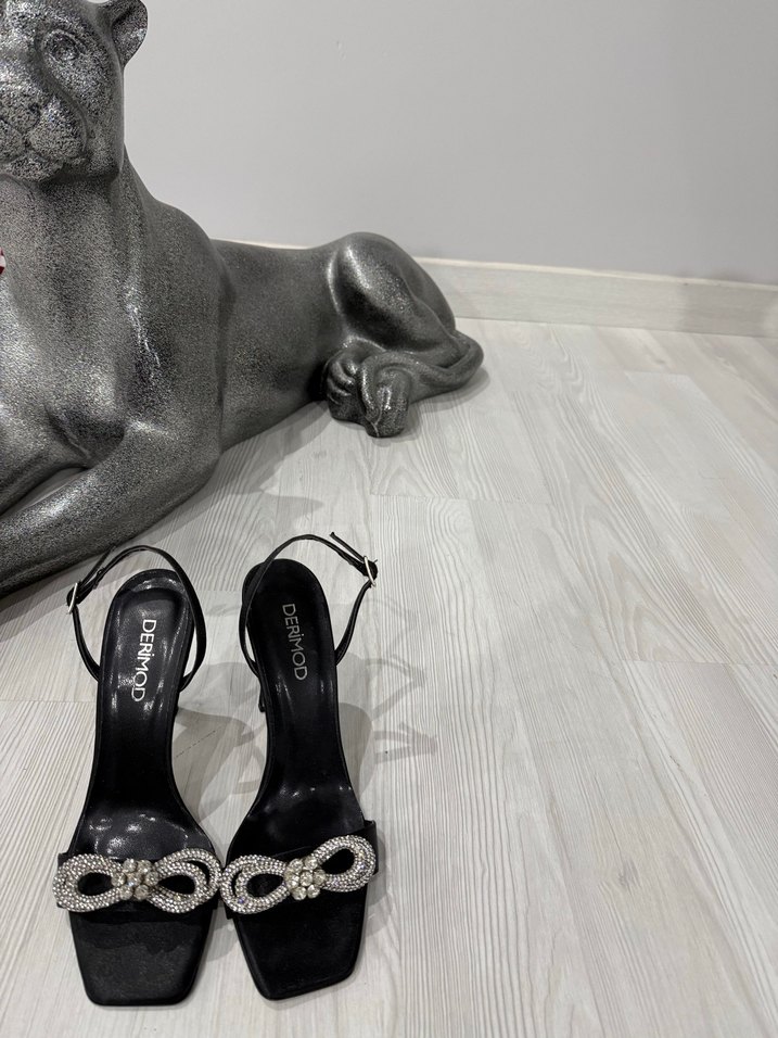 Siyah parlak yılan desenli stiletto topuklu, tokalı kayışlara sahip klasik şıklık için uygun ayakkabı.