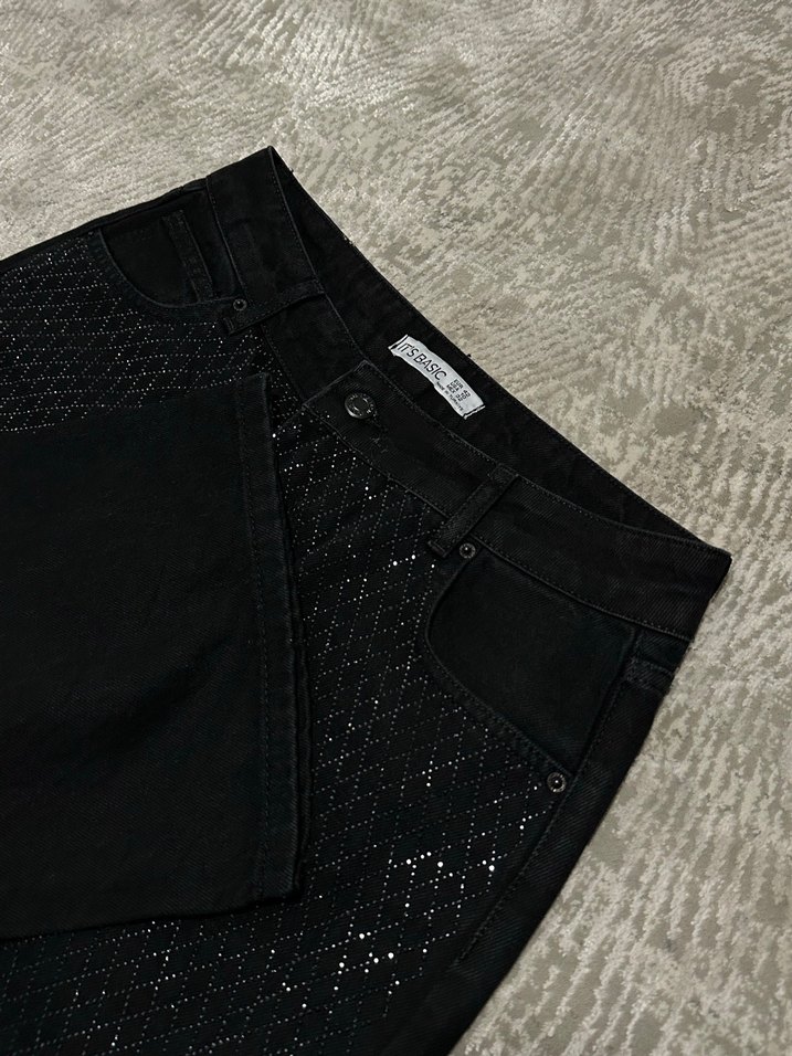Kadın Siyah Payetli Desenli Kot Pantolon