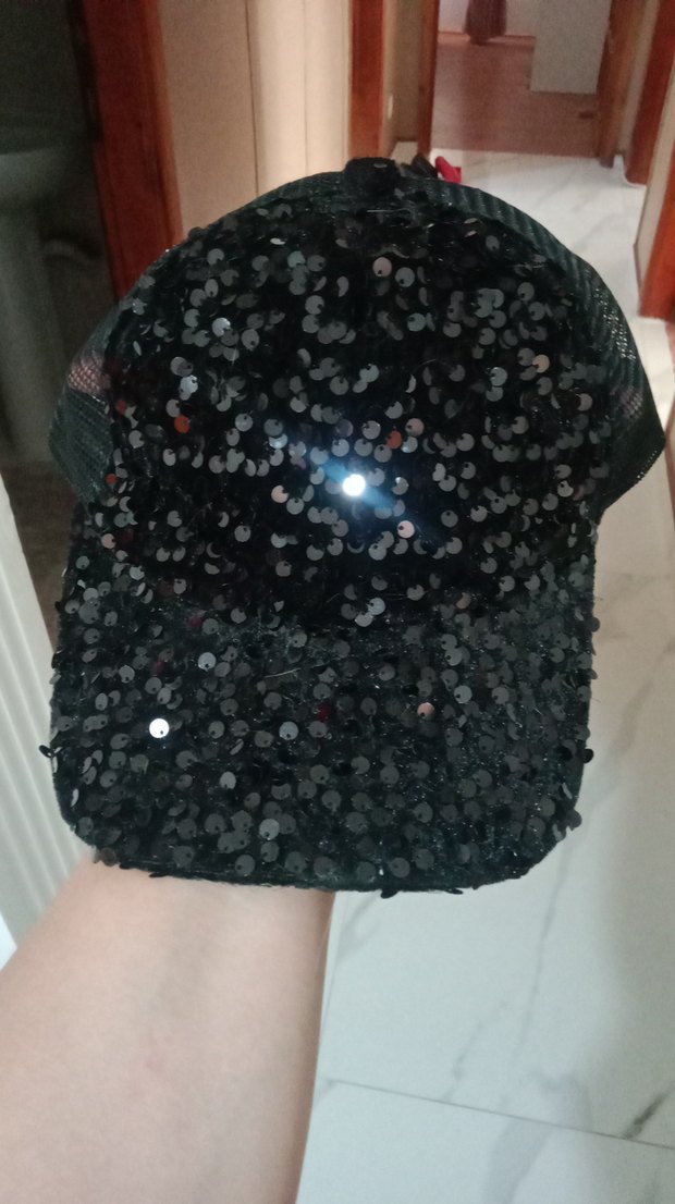 Kadınlar için sentetik kumaştan, siyah renkte, payetlerle süslenmiş gotik tarzda şapka. ✨